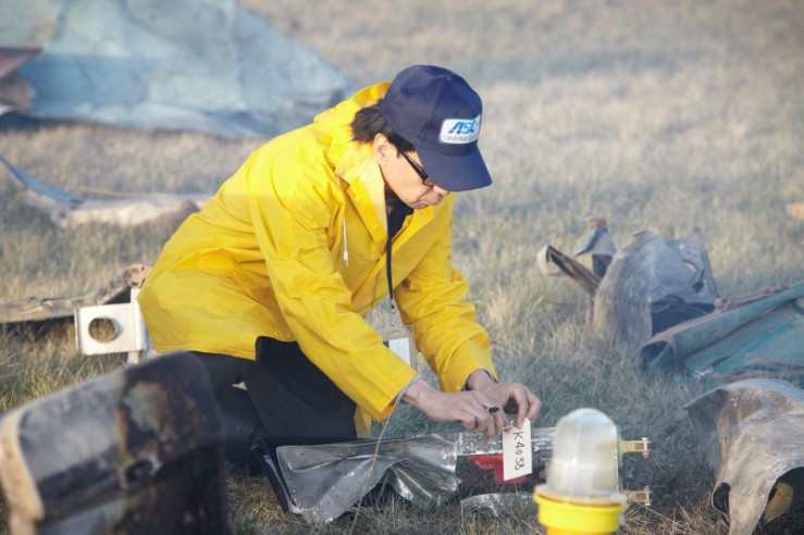 An investigator tags one of the thousands of pieces littering the runway at Taiwan's Chiang Kai-Shek International Airport after Singapore Airlines Flight 006 crashed during take off for a flight to Los Angeles. Much of the wreckage is on a runway adjacent to the one the crew was assigned. Investigators must determine if the wreckage was blown onto the unused runway during a violent storm, or if the crew somehow ended up on the wrong runway.