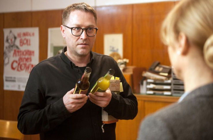 Der Schriftsteller Jan Weiler bekommt von Dr. Eckart (Christina Große) Getränke. Weiteres Bildmaterial finden Sie unter www.br-foto.de.