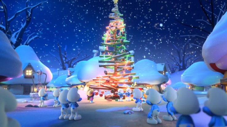 Der Weihnachtsabend ist gekommen und die Schlümpfe warten ungeduldig auf die Bescherung.
