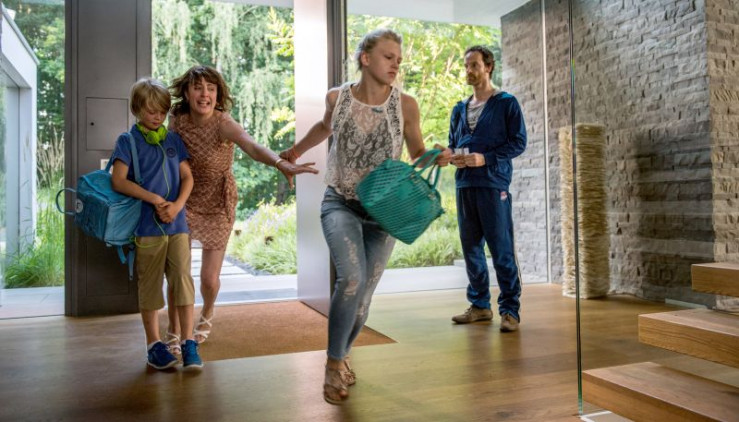Heftig: Kommissar Peter Faber (Jörg Hartmann, r) beobachtet, wie Eva Dehlens (Maren Eggert, 2.v.l) ihren Kindern Mel (Sinje Irslinger, 2.v.r) und Leon (Leonard Klemm, l) vom Mord an ihrem Vater berichtet.