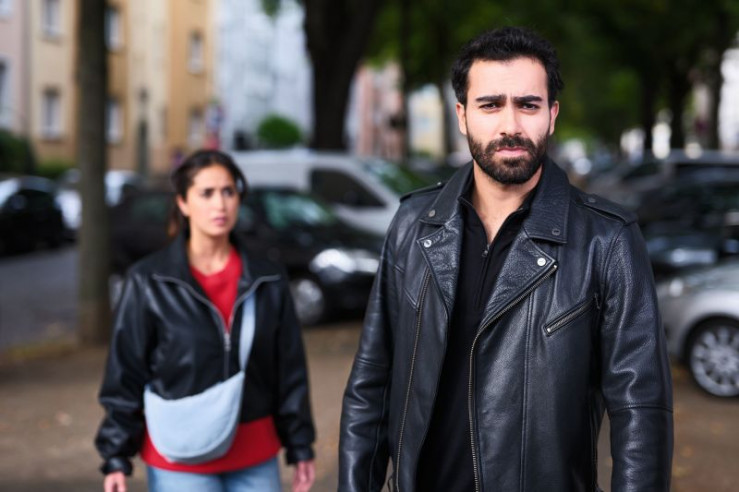 ACHTUNG SPERRFRIST! Die Veröffentlichung dieses Motives ist für alle ONLINE-MEDIEN (außer Programm-Presse) erst ab dem 25.11.2025 frei. Baris (Metehan Demiröz) stößt es sauer auf, wie Benedikt sich als Utes Retter aufschwingt. Links Esma (Özge Delioglan) +++ Die Verwendung des sendungsbezogenen Materials ist nur mit dem Hinweis und Verlinkung auf RTL+ gestattet. +++