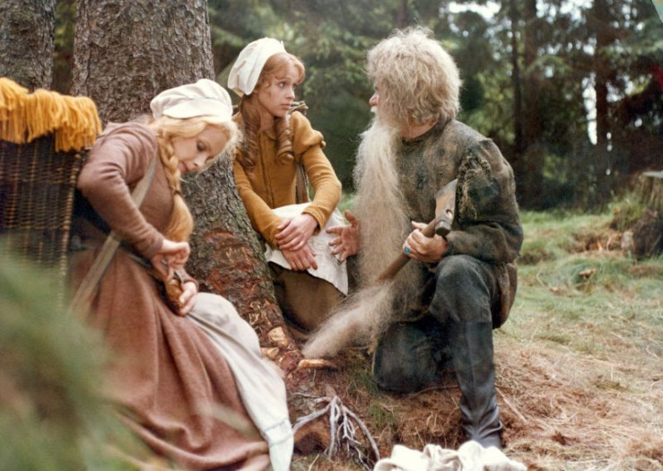 Schneeweißchen (Julie Juri´stová) und Rosenrot (Katrin Martin) versuchen, einem alten Mann (Hans-Peter Minetti) zu helfen, dessen Bart sich beim Holzfällen verfangen hat. Sie wissen nicht, dass dies der böse Berggeist ist, der die ganze Gegend verunsichert. Weiteres Bildmaterial finden Sie unter www.br-foto.de.
