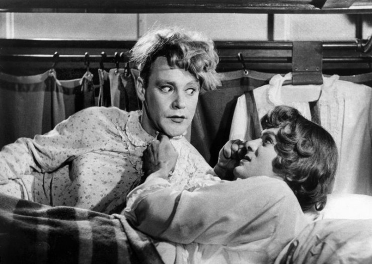 Auf der Flucht vor einer Gangsterbande geben sich die beiden Bar-Musiker Jerry (Jack Lemmon, li.) alias "Daphne" und Joe (Tony Curtis) alias "Josephine" als Frauen aus.