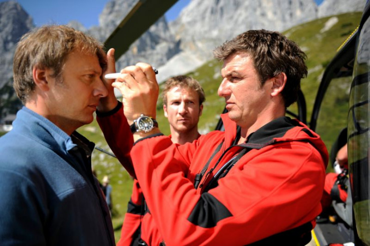 Der Bergführer Erik Schmitt (Christoph Grunert, l.) stellt den Bergdoktor Martin (Hans Sigl, r.) vor ein medizinisches Rätsel.