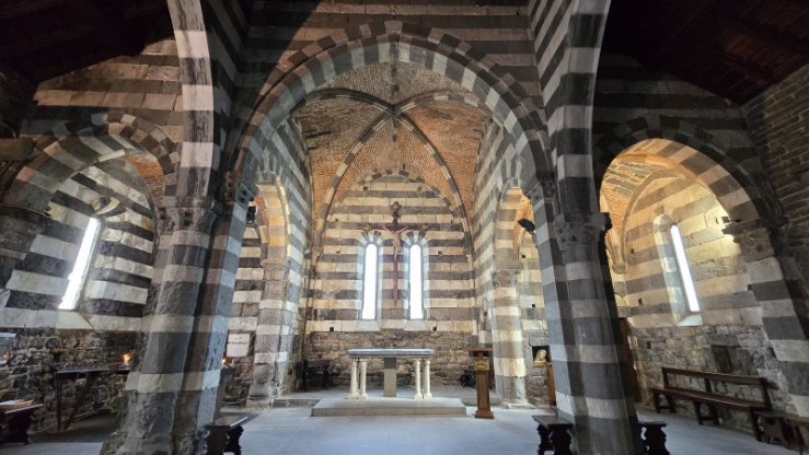 Kirche San Pietro in Portovenere am Golf von La Spezia (Ligurien), Innenansicht.