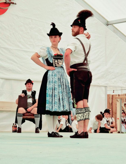 Wichtiger Teil deutscher Traditionen: Die Tracht. Hier ein Tanzpaar aus Bayern.