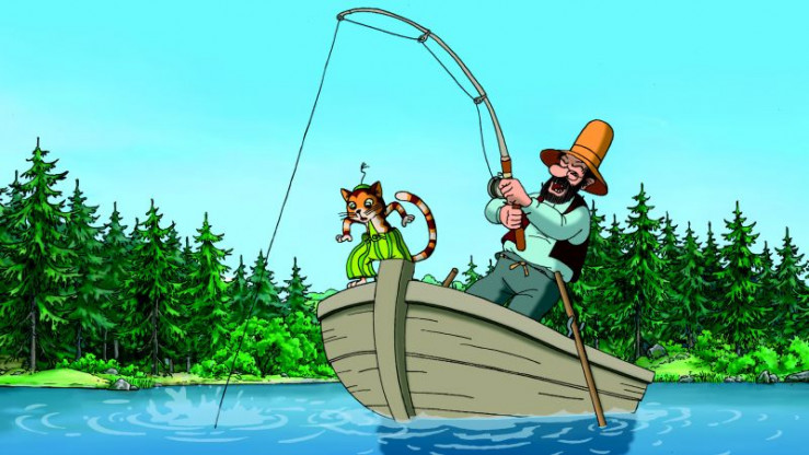 Findus hofft, dass Pettersson endlich einen dicken Fisch an der Angel hat.
