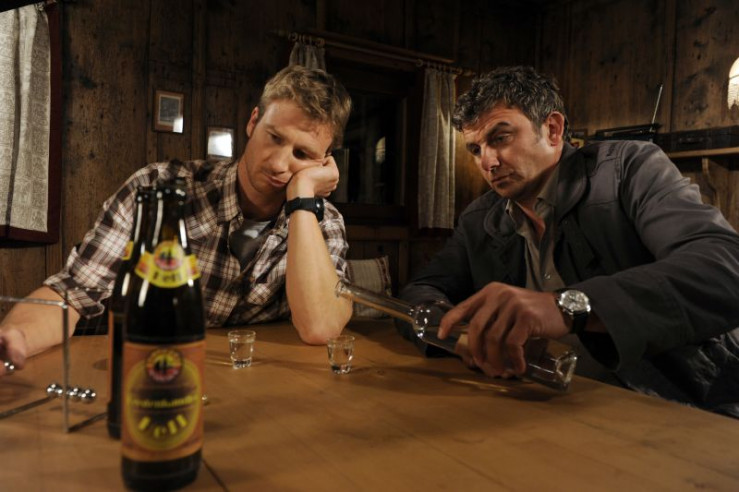 Hans (Heiko Ruprecht, l.) schmollt und auch der Bergdoktor Martin (Hans Sigl, r.) sind nicht gut drauf - da hilft nur ein Schnaps.