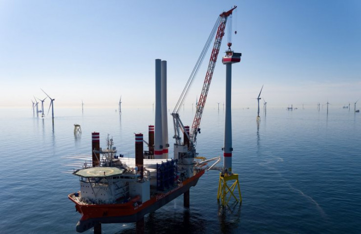 Aufbau einer Offshore-Umspannstation beim Offshore-Windpark Borkum Riffgrund 2.