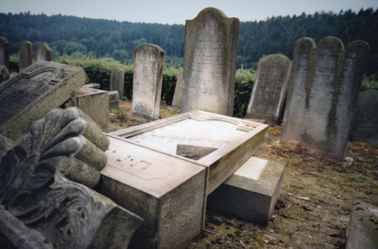 Jüdischer Friedhof von Rhina, im Zustand von 1980. Am 1. März 1939 vermeldete der Bürgermeister das Dorf als "Judenfrei".