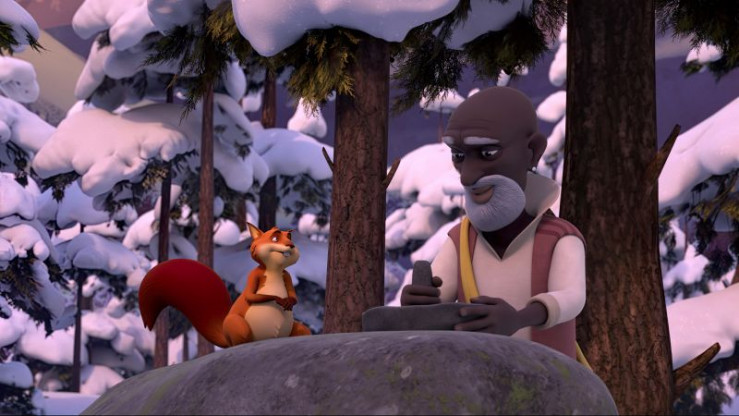 Druide Homnius (rechts) und Eichhörnchen Ryllo (links) wollen mit Hilfe der Kraft der Natur versuchen, die royale Kutsche zu stoppen. Dazu stellt Homnius aus allerhand Pflanzen ein Nebelpulver her, dass die Umgebung in dichte Nebelschwaden tauchen soll.