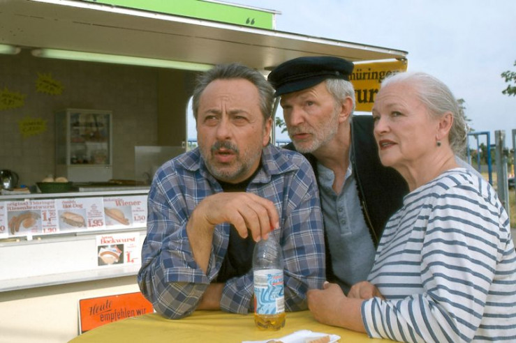 Vom Kleinganoven zum Möchtegern-Verbrecher: Stolze (Wolfgang Stumph, li.) kann den Betrug von alleinstehenden Frauen nicht mehr mit seinem Gewissen vereinbaren und plant jetzt, bei dem Menschen einzubrechen, der ihn betrogen hat. Sein Freund Manni (Michael Gwisdek, re.) und dessen Freundin Hethe (Eva-Maria Hagen) wollen ihn davon abhalten.