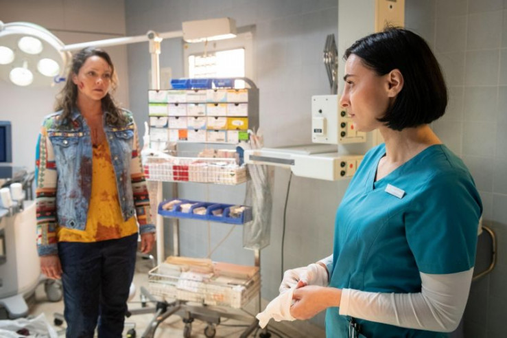 Nora (Mimi Fiedler, r.) ist entsetzt als Ella (Ines Quermann, l.) unerlaubt den OP-Saal betritt. +++ Die Verwendung des sendungsbezogenen Materials ist nur mit dem Hinweis und Verlinkung auf RTL+ gestattet. +++