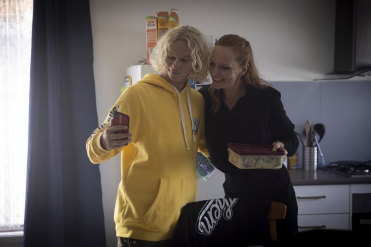 Von links: Mapplethorpe (Stacy Clausen) und seine Mutter Felicity (Alexandra Schepsi) nehmen ein Selfie auf.