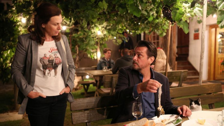 Nicole Sturm (Bettina Mittendorfer) und Kommissar Bergmann (Hary Prinz, re.) treffen sich.