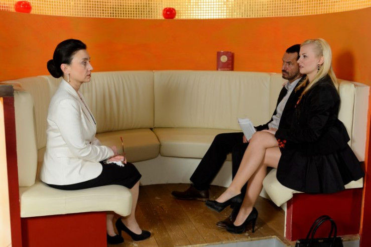 Mit Unterstützung durch Isabelle (Ania Niedieck, r.) will Richard (Silvan-Pierre Leirich) Simone (Tatjana Clasing) für sein Vorhaben gewinnen. +++ Die Verwendung des sendungsbezogenen Materials ist nur mit dem Hinweis und Verlinkung auf RTL+ gestattet. +++