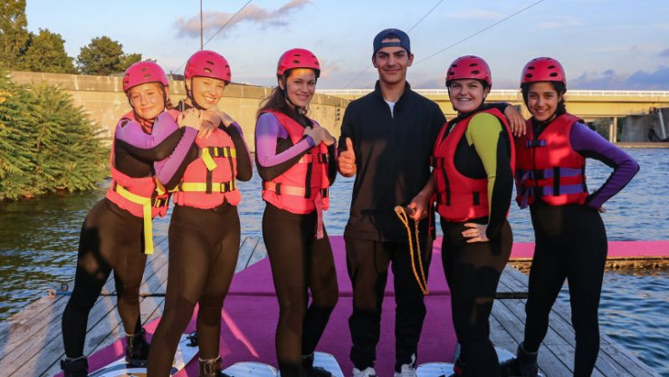 Mit 30 Stundenkilometern über die Donau flitzen: Wer schafft es beim Wakeboarden auf dem Board zu bleiben?