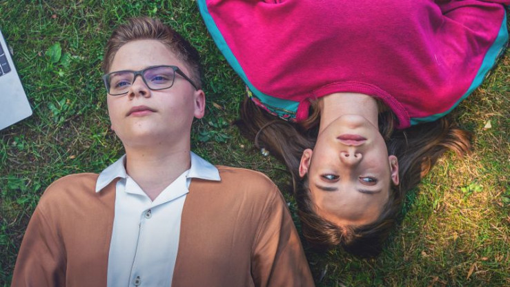 Marlon (Matti Schneider, li., mit Merle Sophie Eismann) ist verliebt, doch weiß nicht, ob es seinem Crush genauso geht.