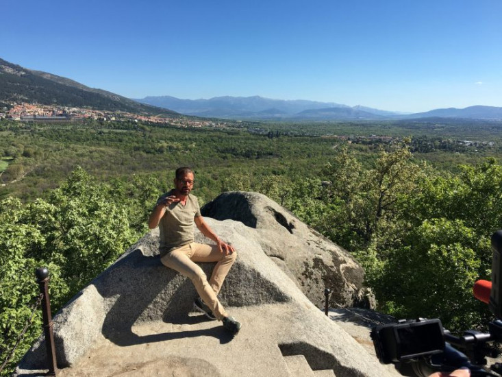 Biogärtner Karl Ploberger im Hintergrund der königliche Sitz der San Lorenzo de El Escorial, historische Residenz.