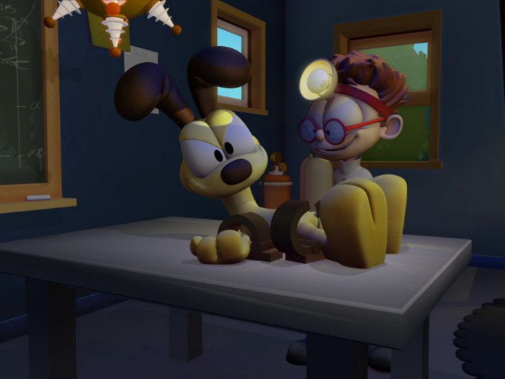 Odie landet bei einem Jungen, der sich als durchgeknallter Hobbywissenschaftler entpuppt, der Odie in eine Kakerlake verwandeln will.