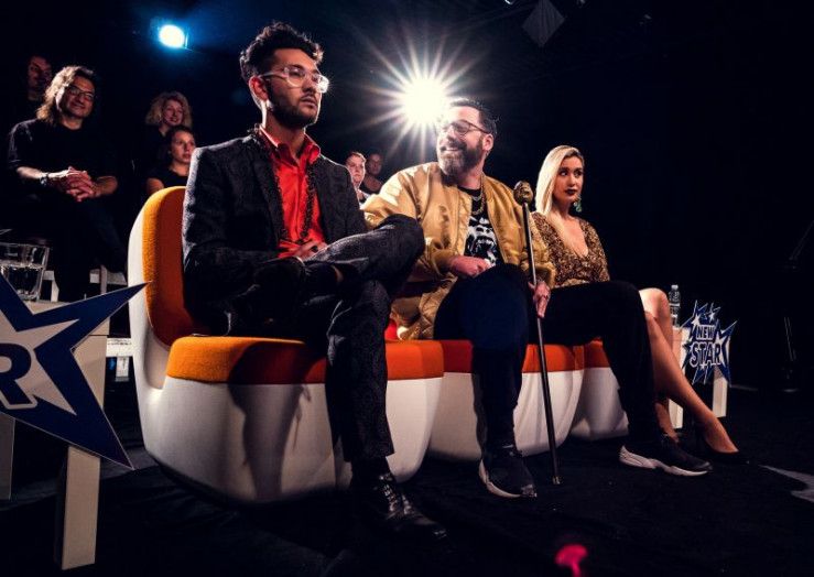"New Star"-Jury wartet auf Maditas Auftritt: Gorilla (Paul Hartmut Würdig "Sido", M.), eine Jurorin (Sahra Bora, r.) und ein weiterer Juror (Darsteller unbekannt).