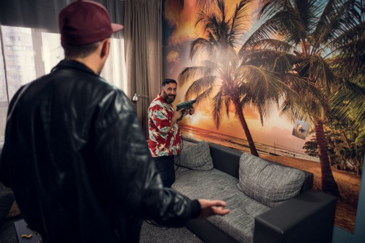 Sol (Eko Fresh, l.) erwischt Volkan (Kida Kodhr Ramadan, r.) beim Bohren von Löchern. Da hat wohl jemand zu viel vom Kokain genascht.
