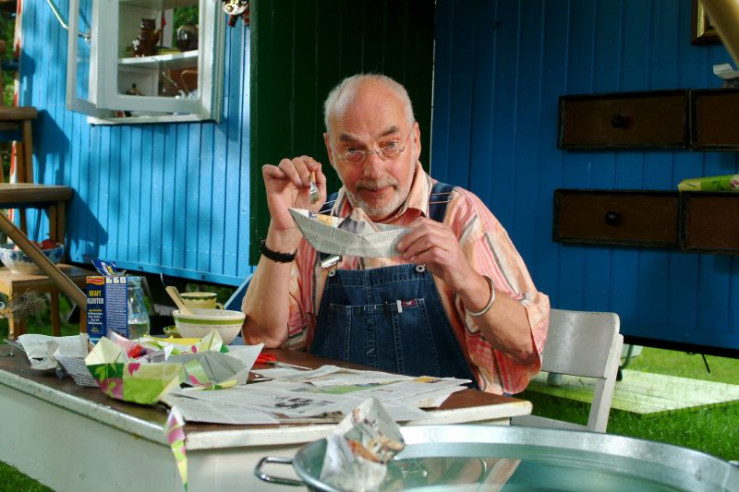 Damit die Papierboote wasserfest werden, streicht Peter (Peter Lustig) sie mit Leim ein.