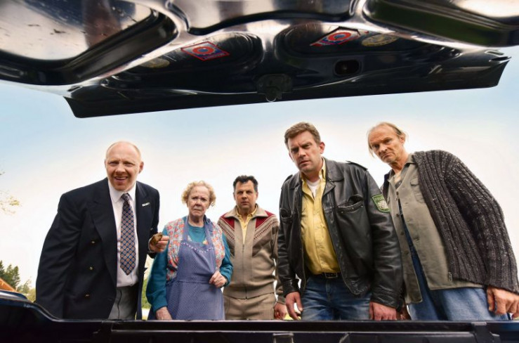 Wo kommt die Frauenleiche her? Von links nach rechts: Rudi (Simon Schwarz), die Oma (Enzi Fuchs), Leopold (Gerhard Wittmann), Franz Eberhofer (Sebastian Bezzel) und Papa Eberhofer (Eisi Gulp)