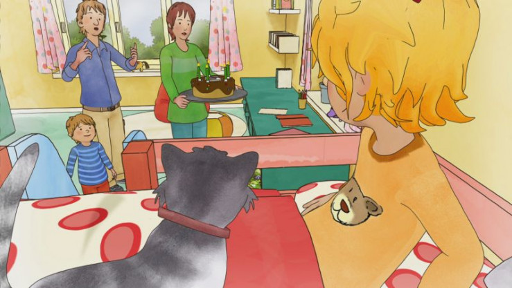Endlich ist der Geburtstagsmorgen da. Conni freut sich sehr über das Geburtstagsständchen von Mama und Papa und ihrem Bruder Jakob. Das wird ein toller Tag.