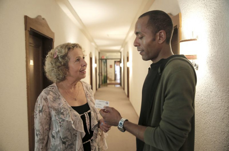 Kommissar Jerry Paulsen (Peter Marton, r.) gibt der Altenheimbewohnerin Rita Fischer (Michaela May, l.) seine Visitenkarte - man weiß ja nie, wann man sie braucht.