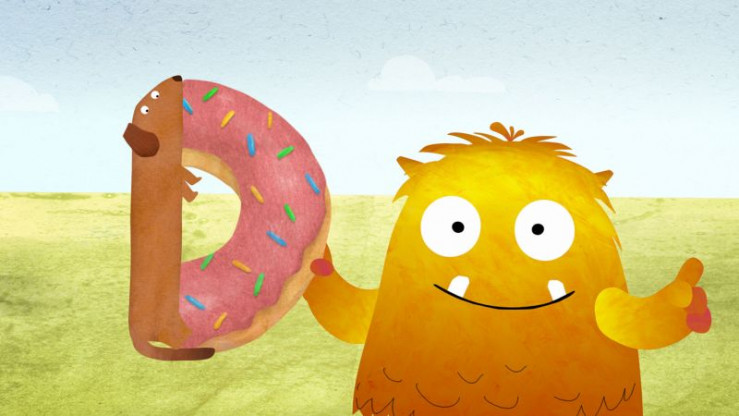 Nitso sucht das D und findet dabei einen Dackel, der von einem Donut abbeißt.