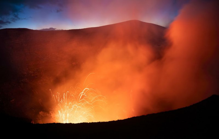 Unzählige Tierarten sind von den Feuerbergen abhängig. In Tansania schuf der "Ol Doinyo Lengai" den Natronsee, Nistplatz für Millionen Zwergflamingos. Auf den Galapagosinseln klettern weibliche Landleguane in den Krater des "La Cumbre", um dort ihre Eier abzulegen.