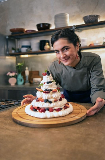 Lucies Pavlova ist gefüllt mit Sahne, Mascarpone und frischen Früchten.