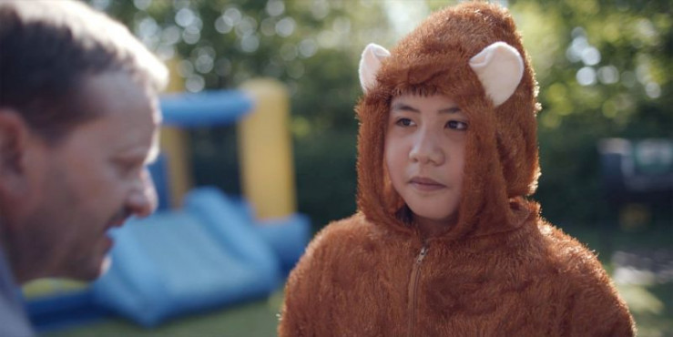 Rocco (Minh Hoang Ha) zeigt seinem Vater Andi (Milan Peschel) seine Verkleidung.