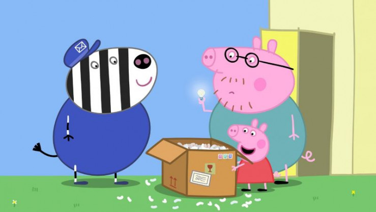 Zum Glück kriegt Papa Wutz (r.) heute etwas von der Post und kann das Paket zum basteln nutzen. +++ Die Verwendung des sendungsbezogenen Materials ist nur mit dem Hinweis und Verlinkung auf RTL+ gestattet. +++