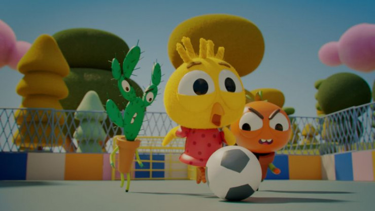 Karla (M.) will Spiky (l.) und Heinz (r.) zeigen, dass Mädchen die eindeutig besseren Fußballspielerinnen sind.