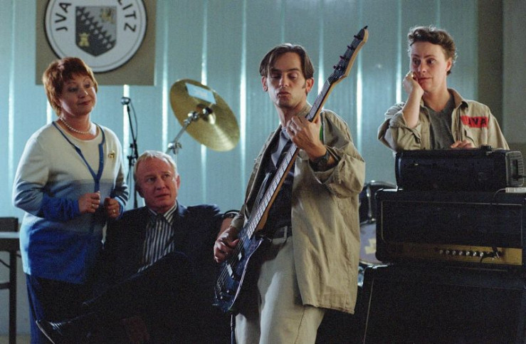 Melanie (Sigrid M. Schnückel, re.) und Mike (Tino Blazejewski, 2.v.re.) versuchen Strauss (Rainer Goernemann) davon zu überzeugen, ihnen mehr Zeit zum Üben für den Bandwettbewerb einzuräumen. Strauss und Möhrchen (Heidi Weigelt) haben keine Ahnung, dass die Musik vom Band kommt... +++ Die Verwendung des sendungsbezogenen Materials ist nur mit dem Hinweis und Verlinkung auf RTL+ gestattet. +++