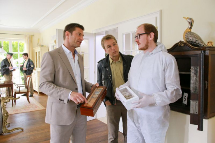 Am Tatort stellen die Rosenheimer Ermittler (v.l.n.r.: Igor Jefti?, Max Müller, Norbert Ortner) fest, dass es sich hier um Raubmord handelt.