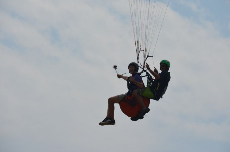 Ole filmt sich während seines ersten Paragliding-Fluges.