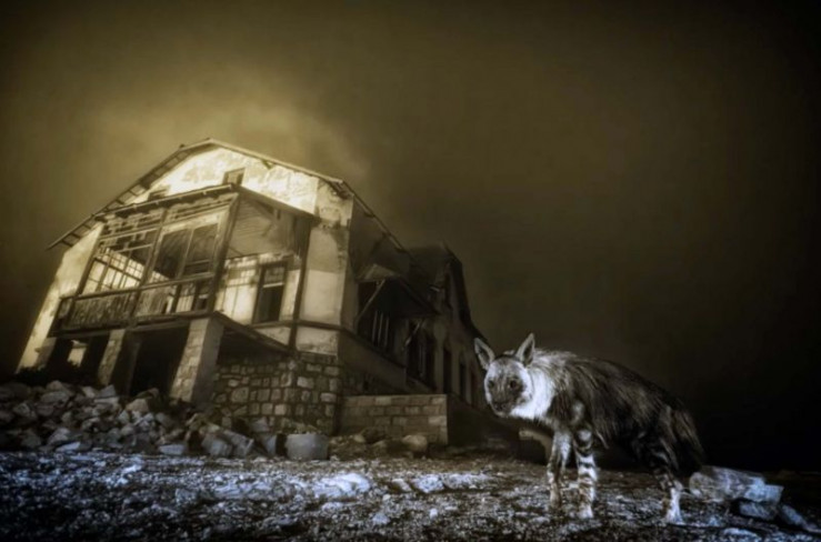 Im Jahr 2025 gewann Wim van den Heever den Preis "Wildlife Photographer of the Year" für eine eindrucksvolle Aufnahme: Eine Braune Hyäne streift durch die Überreste einer stillgelegten Bergbaustadt in Namibia.