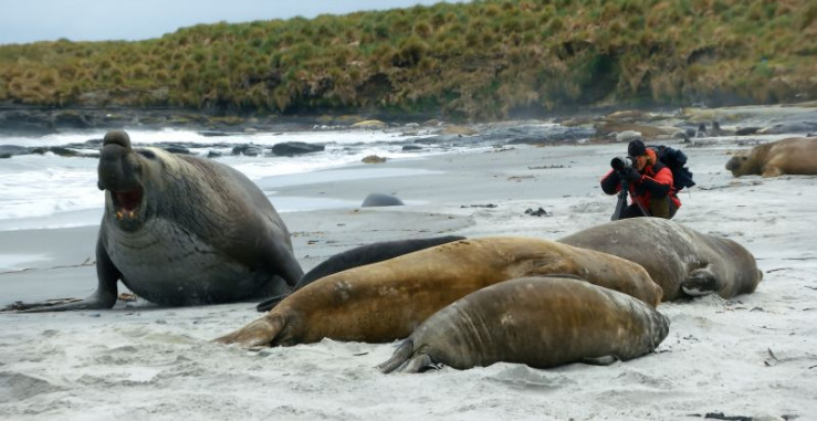 Auf den Falklandinseln beobachtet Andreas Kieling südliche Seeelefantenbullen bei ihren Revierkämpfen.
