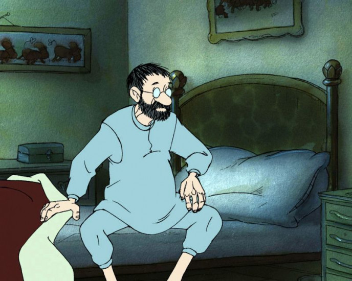 allgemein - 1 Pettersson geht nachts aus dem Bett. Ob der Fuchs wieder um den Hühnerstall schleicht?