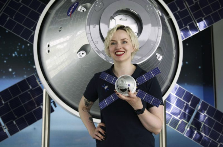 Raumfahrtingenieurin Annemarie Lohse vor einem Modell des Orion-Raumschiffs. Bei Airbus in Bremen wird ein entscheidendes Bauteil gefertigt - das für die AstronautInnen überlebenswichtige' Europäische Service Modul' (ESM).