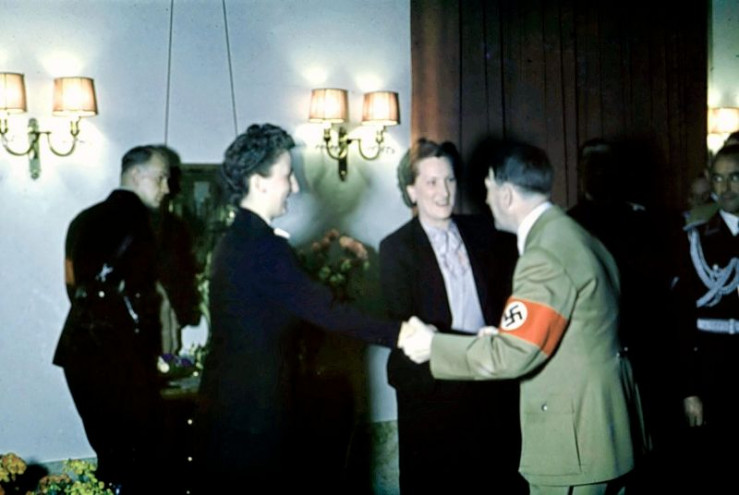 20.04.1939: Adolf Hitler (1889-1945, r.) an seinem 50. Geburtstag. Kurz nach Mitternacht gratulieren ihm seine Sekretärinnen Gerda Christian und Christa Schröder +++ Die Verwendung des sendungsbezogenen Materials ist nur mit dem Hinweis und Verlinkung auf RTL+ gestattet. +++