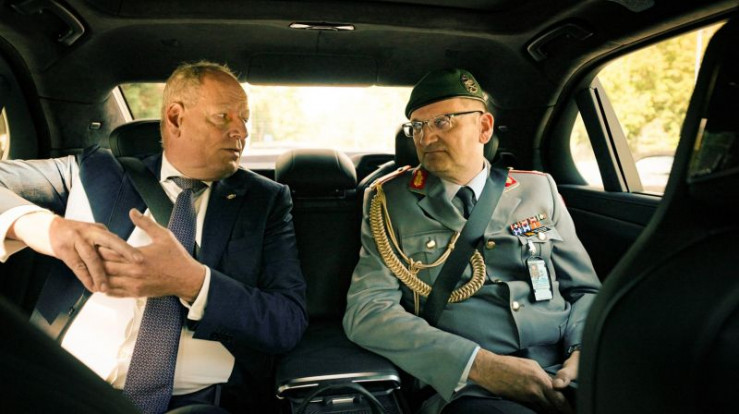 Botschafter Jens Hanefeld wird vom Militärattaché der deutschen Botschaft in Washington zu einem Termin im Pentagon begleitet.
