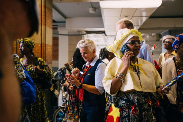 A dancing group from the Keti Koti train is pictured in the Cuijpers Hall in Amsterdam, Netherlands. (National Geographic)
