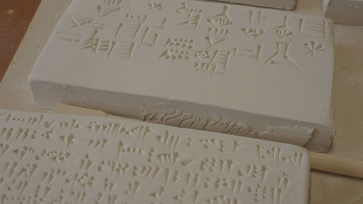 Some modern day examples of how clay cuneiform slabs were produced. As made by our contributor Lara Bampfield. (Windfall Films/Freya Williams)