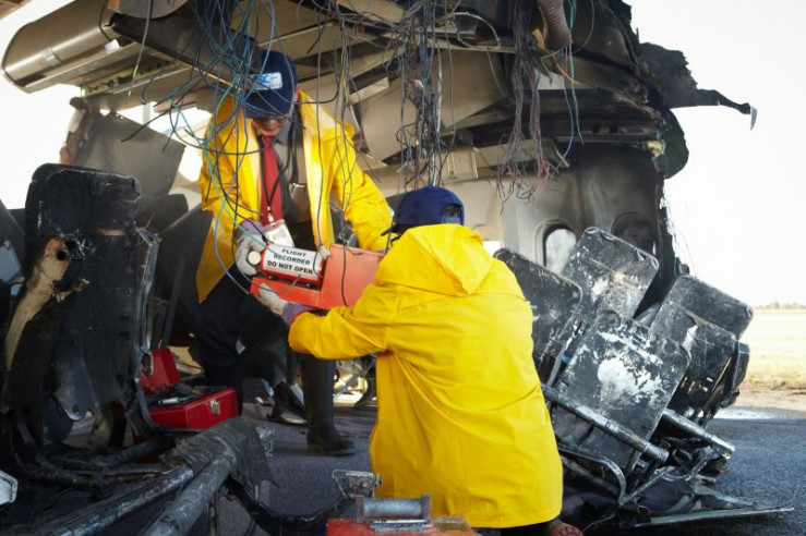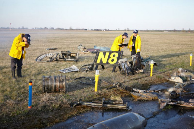 An investigator tags one of the thousands of pieces littering the runway at Taiwan's Chiang Kai-Shek International Airport after Singapore Airlines Flight 006 crashed during take off for a flight to Los Angeles. Much of the wreckage is on a runway adjacent to the one the crew was assigned. Investigators must determine if the wreckage was blown onto the unused runway during a violent storm, or if the crew somehow ended up on the wrong runway.