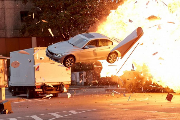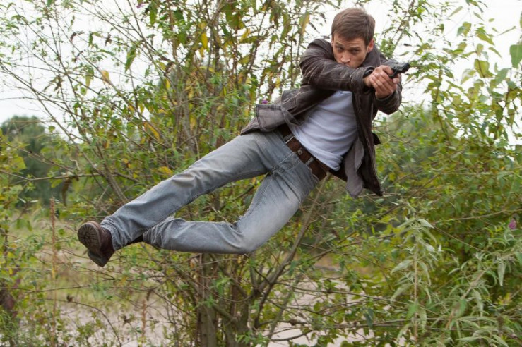 Mit einem gezielten Sprung versucht Alex (Vinzenz Kiefer) den Gangstern in die Parade zu fahren...