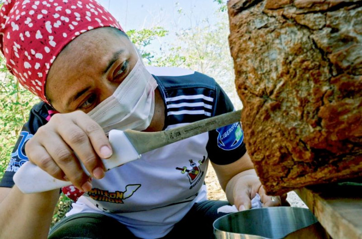Mit einem scharfen Messer wird ein Bienenstock vorsichtig geöffnet, um den seltenen Honig der Melipona zu ernten.